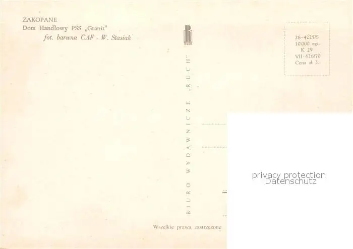 Zakopane_Tatra_PL Dom Handlowy Pss Granit postalisch nicht gelaufen nach 1965 Erhaltung siehe scans [WerneD78] WernPID7