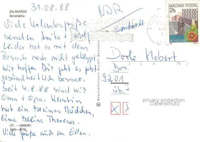 Zalakaros Hotel Zalakaros postalisch gelaufen 1988 Erhaltung siehe scans [NatalD47] NataID47