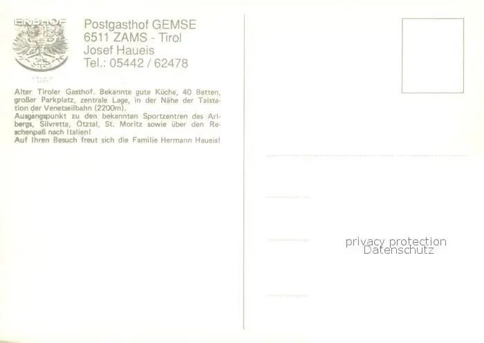 Zams Post Gasthof Gemse Zams postalisch nicht gelaufen nach 1965 Erhaltung siehe scans [WerneD78] WernPID7