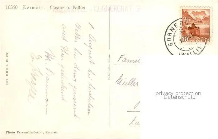 Zermatt_VS Castor und Pollux Zermatt_VS postalisch gelaufen 1921-1965 Erhaltung siehe scans [WerneD78] WernPID7