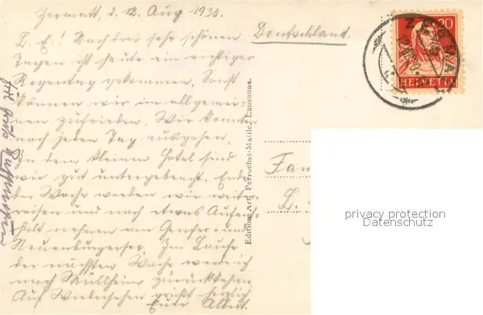 Zermatt_VS Vue sur les Mischabel Zermatt_VS postalisch gelaufen 1930 Erhaltung siehe scans [WerneD78] WernPID7