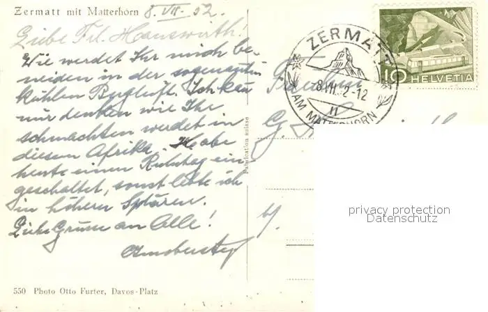 Zermatt_VS mit Matterhorn Zermatt_VS postalisch gelaufen 1952 Erhaltung siehe scans [WerneD78] WernPID7
