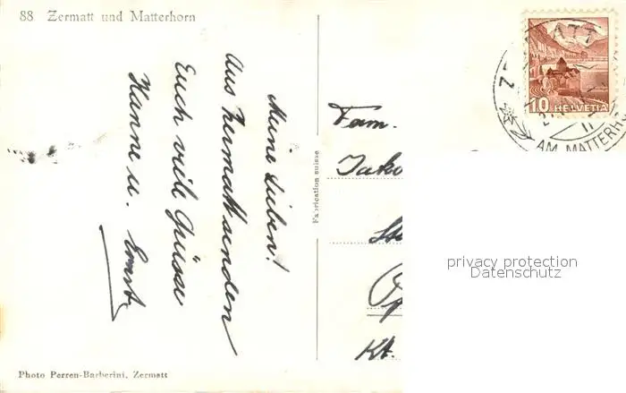 Zermatt_VS mit Matterhorn Zermatt_VS postalisch gelaufen 1921-1965 Erhaltung siehe scans [LiesaD40] LiesID40