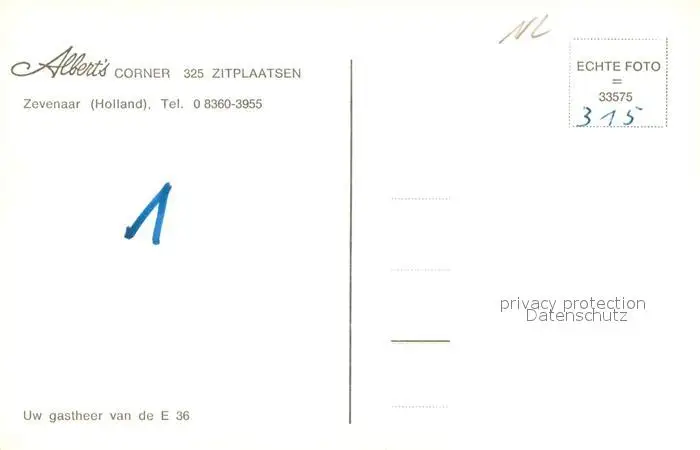 Zevenaar Alberts Corner Gastraeume Bar Zevenaar postalisch nicht gelaufen nach 1965 Erhaltung siehe scans [WerneD78] WernPID7