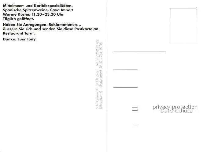 Zuerich_ZH Turm-Restaurant Zuerich_ZH postalisch nicht gelaufen nach 1965 Erhaltung siehe scans [FriedD77] Frierer