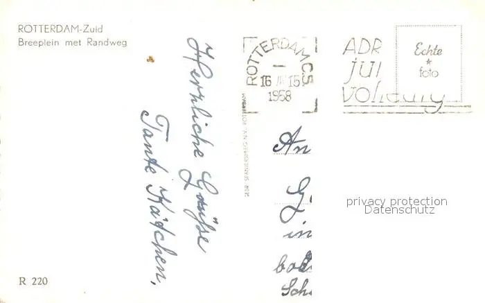 Zuid_Rotterdam Breeplein met Randweg postalisch gelaufen 1958 Erhaltung siehe scans [FriedD77] Frierer