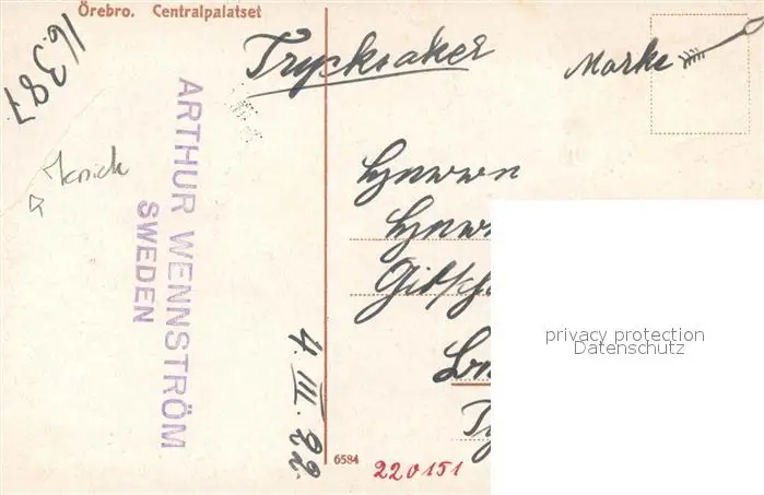 oerebro Centralpalatset oerebro postalisch gelaufen 1922 Erhaltung siehe scans [WerneD78] WernPID7