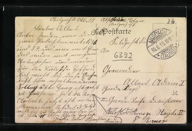 gelaufen 1915, geklebte Eckknicke li. und re. unten, guter Zustand