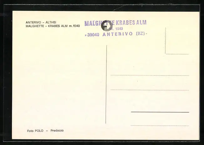 AK Anterivo-Althei, Bar Malghette-Krabes Alm in vier Ansichten