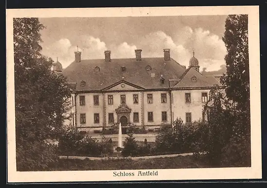 AK Antfeld, Schloss mit Springbrunnen im Vordergrund