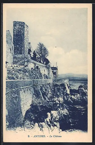 AK Antibes, Le Château surplombant la mer et les falaises rocheuses