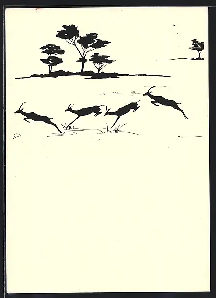 AK Antilopen in der afrikanischen Savanne, Scherenschnitt