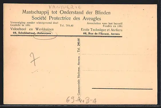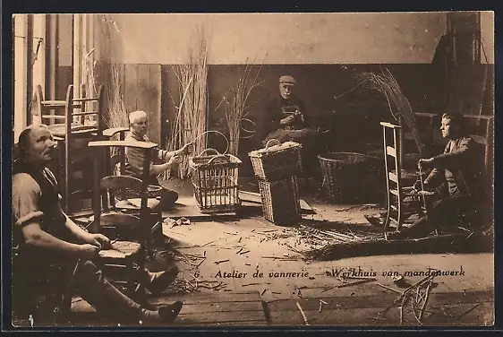 AK Antwerpen / Anvers, Ateklier de vannerie, Werkstatt blinder Korbflechter