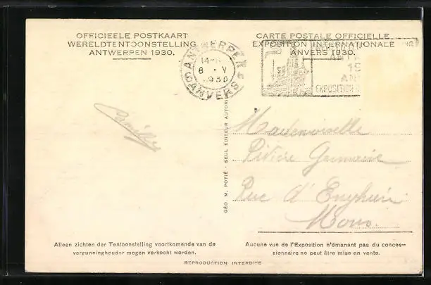 AK Antwerpen, Wereldoonstelling 1930, Hoofdingang