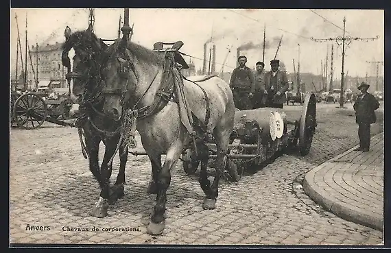AK Anvers, Chevaux de Corporations, Pferdegespann in den Strassen von Antwerpen