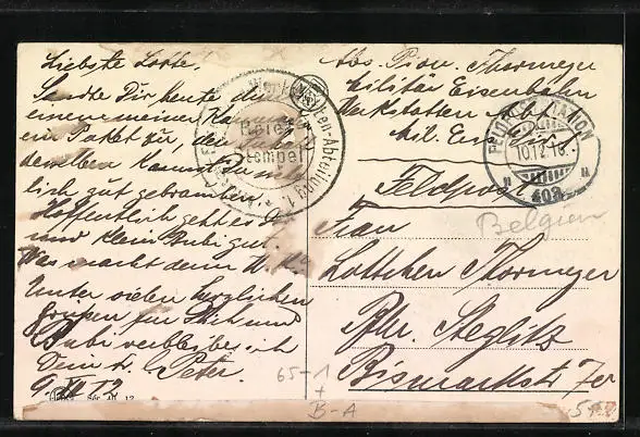alte Ansichtskarte, gelaufen 1916 als Feldpost, Ecken bestoßen, aus Leporello, guter Zustand