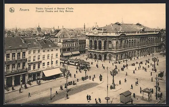 AK Anvers, Theatre flamand et Avenue d'Italie, Strassenbahn