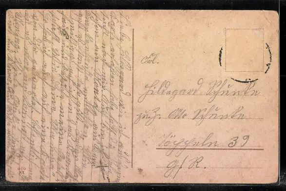 alte Ansichtskarte, gelaufen, Briefmarke entfernt, guter Zustand