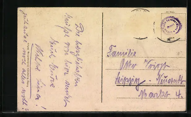 alte Ansichtskarte, gelaufen, Briefmarke entfernt, Stempelspur, guter Zustand