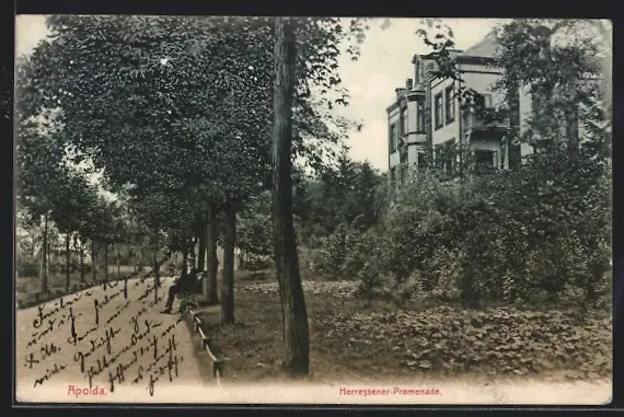 AK Apolda, Herressener-Promenade lädt zum Ausruhen ein