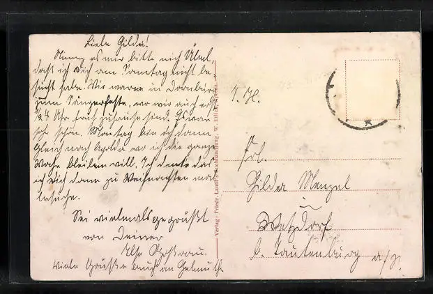 alte Ansichtskarte, gelaufen, Briefmarke entfernt, Eckknick li. oben, guter Zustand
