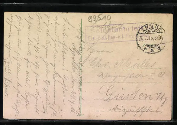 alte Ansichtskarte, gelaufen 1916 als Feldpost, Eckknick re. unten, Einriss li. oben, guter Zustand