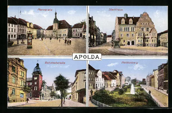 AK Apolda, Stadthaus, Marktplatz, Bahnhofstrasse, Heidenberg