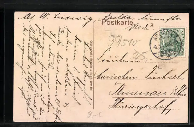 alte Ansichtskarte, gelaufen 1911, Einriss re. unten, guter Zustand