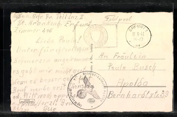 gelaufen als Feldpost 1941, guter Zustand
