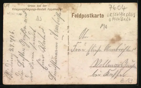 AK Appenweier /Baden, Ortsansicht, Kriegsverpflegungs-Anstalt
