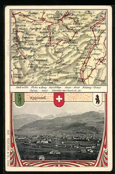 AK Appenzell, Ortsansicht mit Landkarte und Wappen