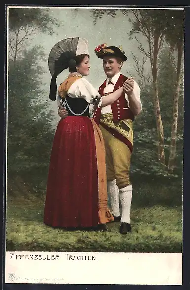AK Appenzell, Paar in Tracht beim Tanz, Schweiz
