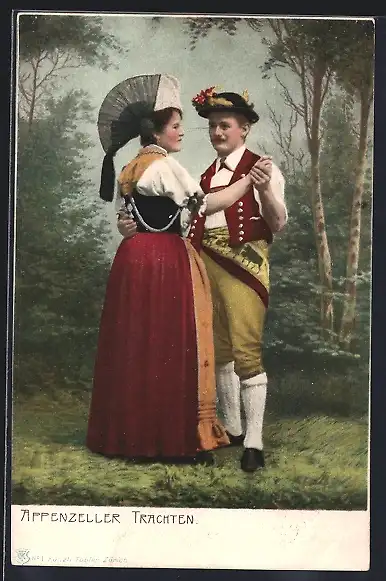 AK Appenzell, Paar in Tracht beim Tanz, Schweiz