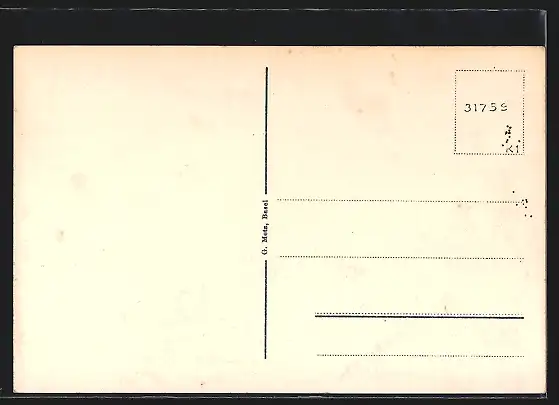 Personenbezogene Daten auf der Rückseite der Karte wurden durch blauen Textmarker unkenntlich gemacht. Die blauen Stellen sind auf die Vorderseite durchgeweicht und wirken sich negativ auf das Postkartenfoto aus