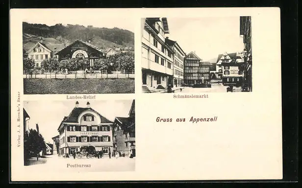 AK Appenzell, Schmäuslemarkt mit Geschäft, Postbureau, Landes-Relief