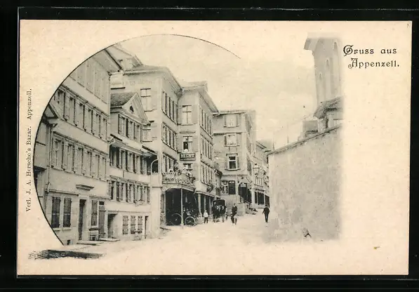 AK Appenzell, Strassenpartie mit Geschäft von Hecht