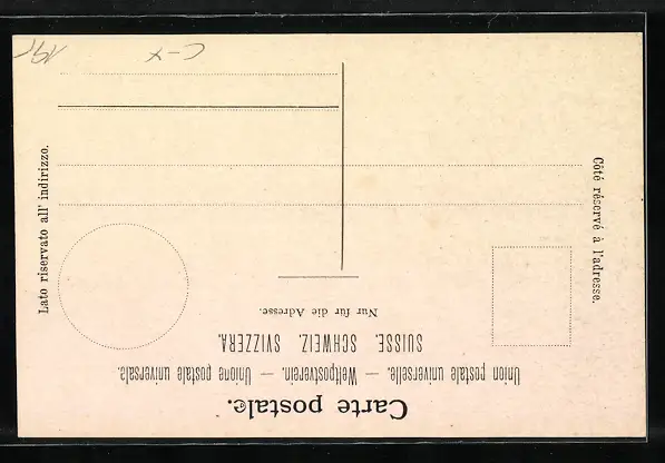 Personenbezogene Daten auf der Rückseite der Karte wurden durch blauen Textmarker unkenntlich gemacht. Die blauen Stellen sind auf die Vorderseite durchgeweicht und wirken sich negativ auf das Postkartenfoto aus