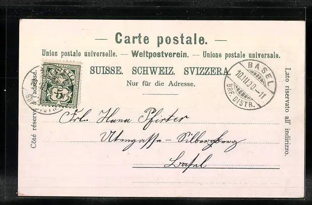 alte Ansichtskarte, gelaufen 1900, leichte Bugspur oben, sonst guter Zustand