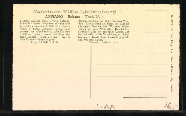 AK Appiano /Bolzano, Pensione Villa Liebenburg