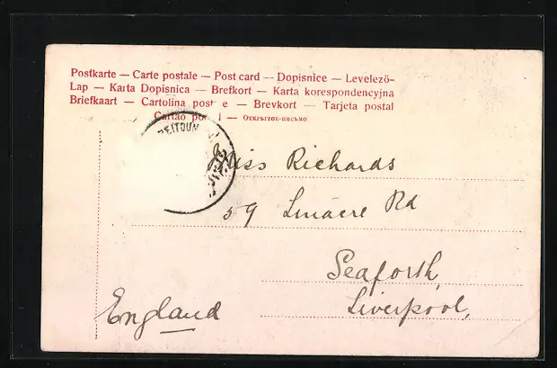alte Ansichtskarte, gelaufen, Briefmarke entfernt, guter Zustand
