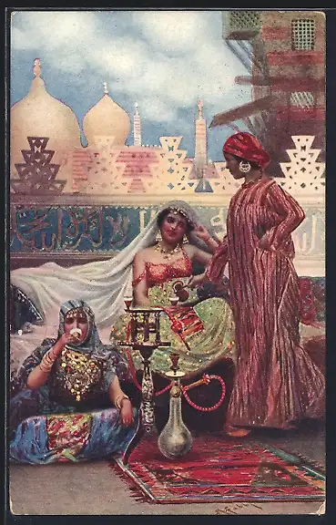 AK Arabische Wohlbetuchte mit Wasserpfeife