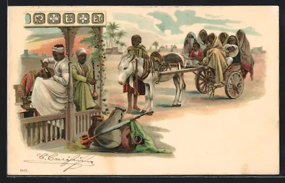 AK Arabischer Friseur und Familie mit Eselsgespann