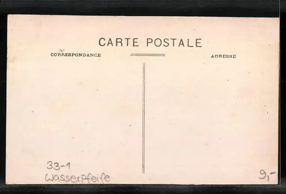 Personenbezogene Daten auf der Rückseite der Karte wurden durch blauen Textmarker unkenntlich gemacht. Die blauen Stellen sind auf die Vorderseite durchgeweicht und wirken sich negativ auf das Postkartenfoto aus