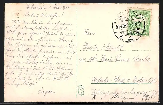 alte Ansichtskarte, gelaufen 1914, Eckknicke oben, guter Zustand
