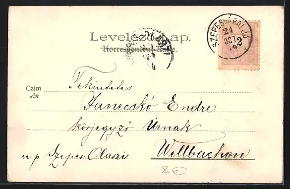 Personenbezogene Daten auf der Rückseite der Karte wurden durch blauen Textmarker unkenntlich gemacht. Die blauen Stellen sind auf die Vorderseite durchgeweicht und wirken sich negativ auf das Postkartenfoto aus