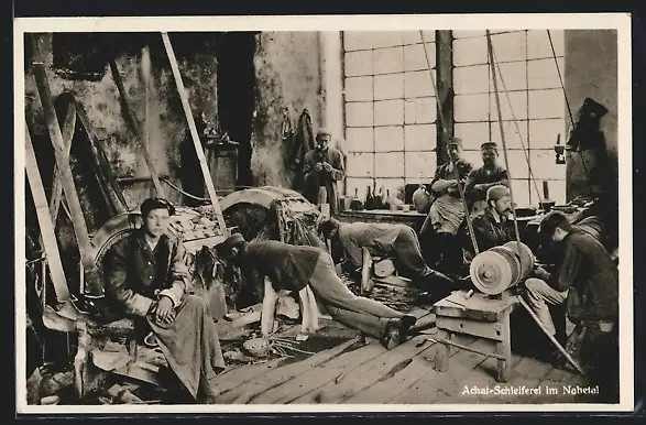AK Arbeiter in einer Achatschleiferei im Nahetal