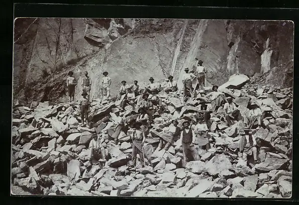 AK Arbeiter zwischen Steinen in einem Steinbruch
