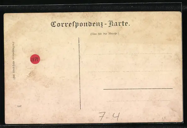 Personenbezogene Daten auf der Rückseite der Karte wurden durch blauen Textmarker unkenntlich gemacht. Die blauen Stellen sind auf die Vorderseite durchgeweicht und wirken sich negativ auf das Postkartenfoto aus
