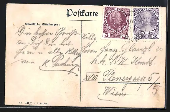 Personenbezogene Daten auf der Rückseite der Karte wurden durch blauen Textmarker unkenntlich gemacht. Die blauen Stellen sind auf die Vorderseite durchgeweicht und wirken sich negativ auf das Postkartenfoto aus