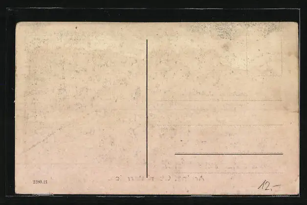 Personenbezogene Daten auf der Rückseite der Karte wurden durch blauen Textmarker unkenntlich gemacht. Die blauen Stellen sind auf die Vorderseite durchgeweicht und wirken sich negativ auf das Postkartenfoto aus
